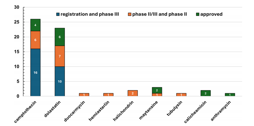 · 技术融合创新:半合成和全合成技术解决天然产物供应短缺问题(如苔藓抑素1 通过全合成实现临床试验供应);ADC 技术与天然产物结合打造精准治疗新范式,拓展其在肿瘤治疗中的应用。